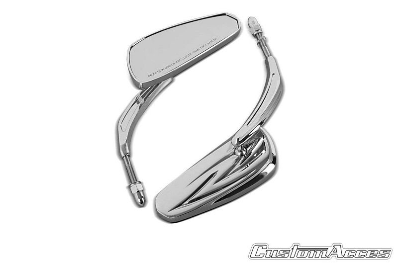 Mooie set universele spiegels model Star van het merk Custom Acces. De spiegels hebben een M10x1,25 aansluiting. Deze spiegels kunnen gemonteerd worden op Harley Davdison modellen. Dit kan zonder adapter omdat het replica's zijn van de originele Harley Davidson spiegels.