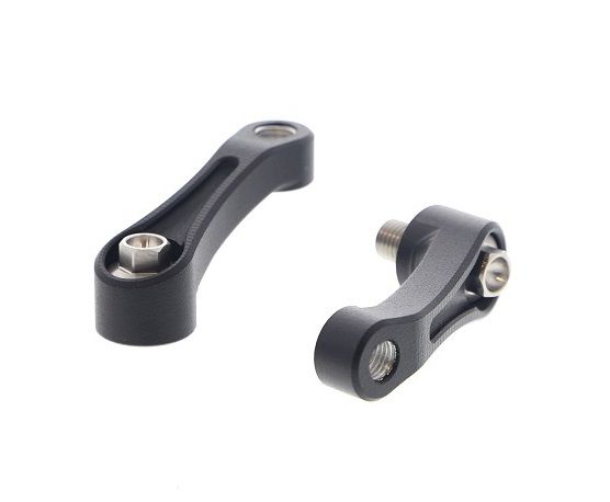 Set spiegelverbreders in de kleur zwart voor op het stuur. Met deze verbreders gaan de spiegels 3cm omhoog en 5cm naar buiten. Wordt geleverd inclusief bevestigingsmateriaal.
