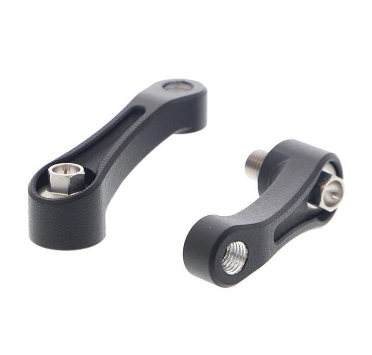 Set spiegelverbreders in de kleur zwart voor op het stuur. Met deze verbreders gaan de spiegels 3cm omhoog en 5cm naar buiten. Wordt geleverd inclusief bevestigingsmateriaal.Evotech Performance-spiegelverbreders zijn eenvoudig te monteren. Monteer de nieuwe verbreder eenvoudig tussen uw spiegel en de originele montagepositie. Dit zorgt voor een verbreding van 30mm, plus een 50mm verhoging. De spiegelverbreders zijn CNC gefreesd uit aluminium van hoogwaardige vliegtuigkwaliteit. Zwart gepoedercoat voor een langere levensduur. Extra roestvrije spacers worden meegeleverd om de schakel vrij te maken. In positie gebracht met behulp van roestvrijstalen bouten. Wij leveren links en rechtsdraaiende bouten indien nodig.Eigenschappen:Merk: Evotech PerformanceOnderdeelsoort: spiegelverbredersModel/type: spiegelverbreder voor stuur