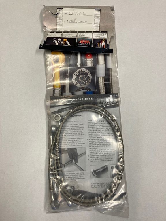 -Zilvere koppelstukken -Voor een beter gevoel met remmen -Stahlflex gevlochten buitenmantel met teflon binnenleiding -TUV gekeurd -Draaibare koppelstukken