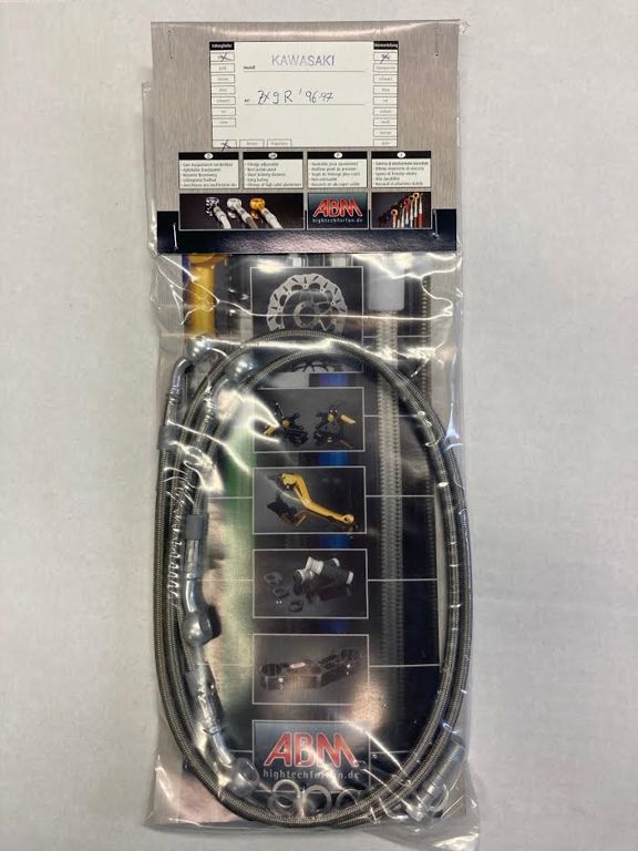 -Zilvere koppelstukken-Past NIET op het '94-95 model!-Voor een beter gevoel met remmen-Stahlflex gevlochten buitenmantel met teflon binnenleiding-TUV gekeurd-Draaibare koppelstukkenEigenschappen:Onderdeelsoort: RemleidingMerk: ABM