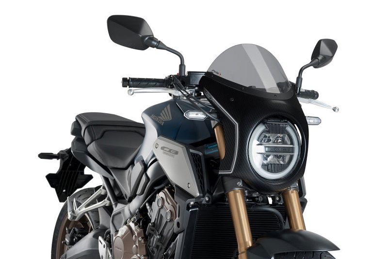 Stuurkuipje carbon look model retro fairing met ruitje Puig Honda CB650R '19-23 / CB1000R '18-20 De naked bike ruiten van Puig zijn speciaal ontworpen om de winddruk op de rijder te verlagen. Vrijwel alle naked bike ruiten worden op de originele bevestigingspunten gemonteerd. Als er aanpassingen gedaan moeten worden aan de motor om de naked bike ruit te kunnen monteren, dan wordt dit altijd duidelijk vermeld bij de productinformatie. Al het bevestigingsmateriaal dat nodig is om dit naked bike te kunnen monteren wordt met de ruit meegeleverd. Alle ruiten van Puig zijn gemaakt van 3mm high impact acrylic en hebben een perfecte pasvorm. Een ruit waar u jaren plezier van zult hebben.