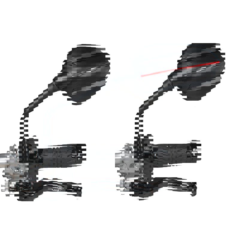 Mooie stuurspiegel van Chaft, mat zwart met een rood gekleurd biesje