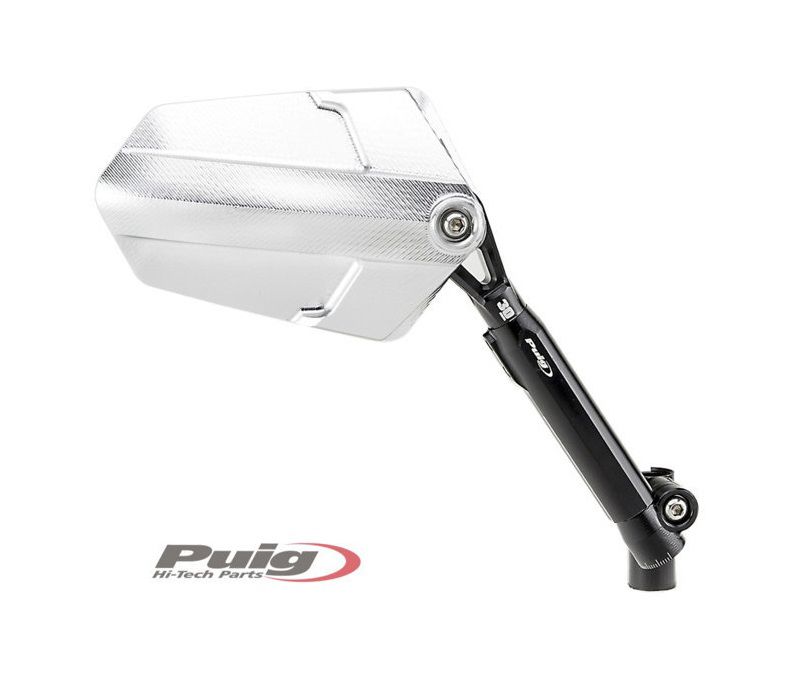 Mooie aluminium spiegel van PuigVoor montage op het stuurGefreesd uit aluminiumVeelvoudig verstelbaar30mm uitschuifbaar!Afmeting: breedte 145mm, hoogte 90mmMet M10x1,25 draad, incl. M10x1,25 (linkse draad) adapterStuurspiegel model EXPLORER rechts PuigEigenschappen:Model/type: stuurspiegelsMerk: PuigOnderdeelsoort: spiegel
