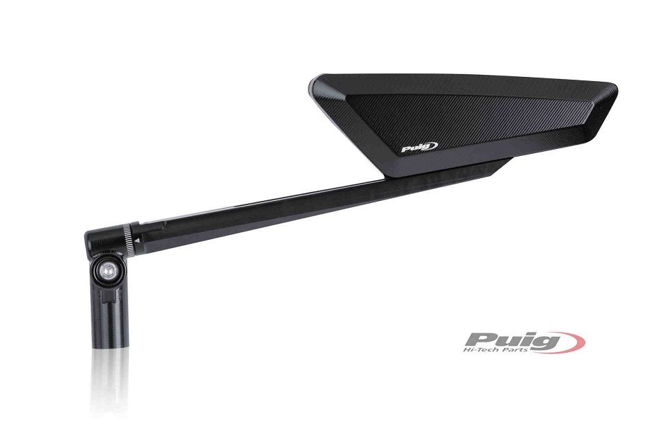 Mooie aluminium spiegel van Puig Voor montage op het stuur Gefreesd uit aluminium Veelvoudig verstelbaar Afmeting spiegelglas: 145x48mmM10x1,25 draadStuurspiegel model Hypernaked links PuigEigenschappen:Model/type: stuurspiegelsMerk: PuigOnderdeelsoort: spiegel