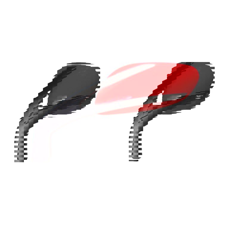 Mooie stuurspiegel van Chaft. Zwarte steun met rood spiegelhuis -te gebruiken voor de linkerkant -verstelbaar -montage op het het stuur, met M10x1,25 aansluiting -zie tekening voor de maten -inclusief Yamaha adapter -leverbaar in mat zwart, carbon, wit, groen en rood