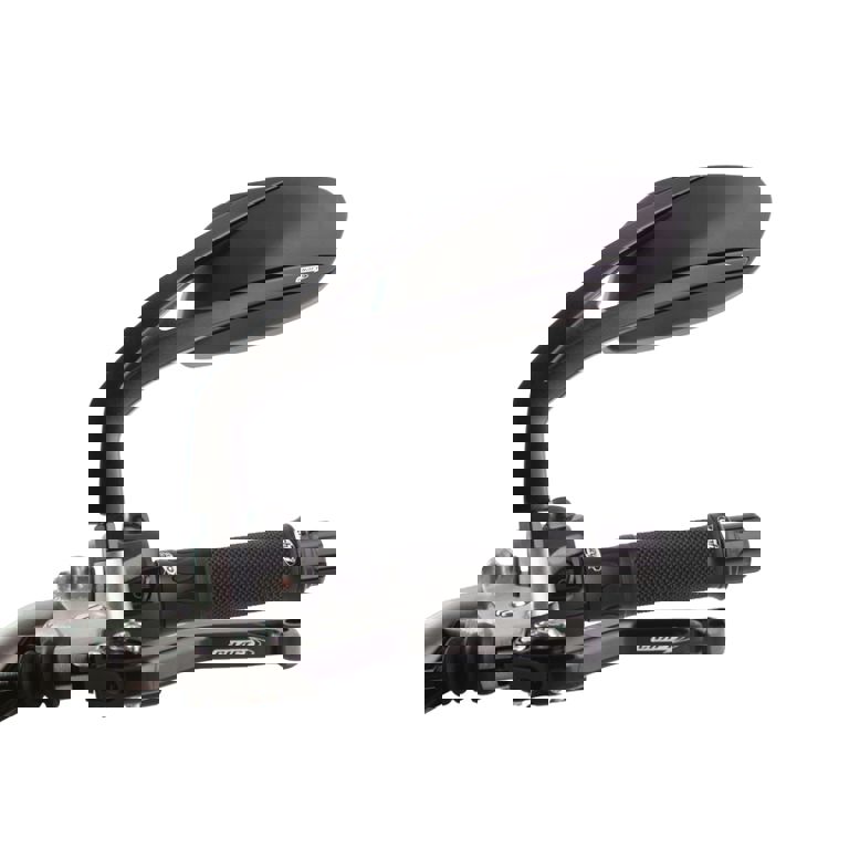 Mooie stuurspiegel van Chaft. Zwarte steun met zwart spiegelhuis