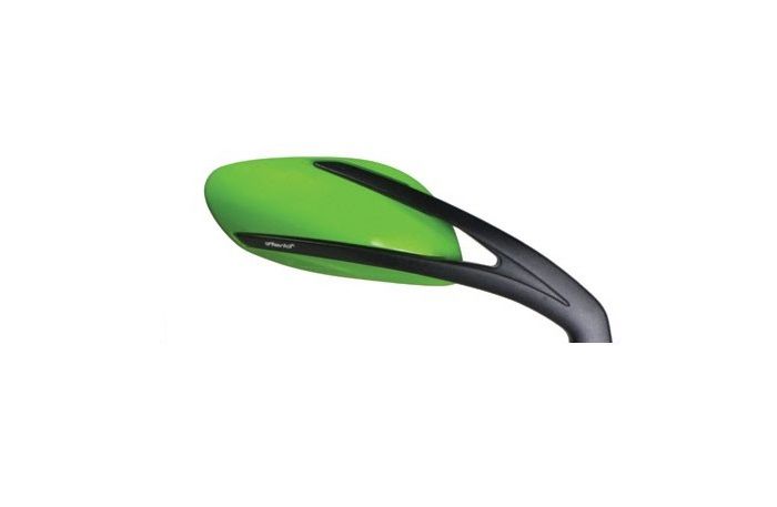 Mooie stuurspiegel van Chaft. Zwarte steun met groen spiegelhuis -te gebruiken voor de rechterkant -verstelbaar -montage op het het stuur, met M10x1,25 aansluiting -zie tekening voor de maten -inclusief Yamaha adapter -leverbaar in mat zwart, carbon, wit, groen en rood