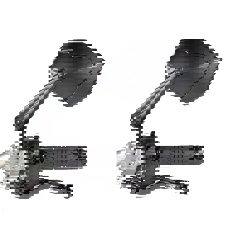 Mooie stuurspiegel van Chaft in de kleur zwart-te gebruiken voor de linker- en rechterkant-verstelbaar-met CE keur-montage op het het stuur, met M10x1,25 aansluiting-wordt geleverd met Yamaha adapter-afmeting: totale breedte: 230mm, glas: 145x90mmStuurspiegel model Skyline links/rechts ChaftEigenschappen:Model/type: stuurspiegelsMerk: ChaftOnderdeelsoort: spiegel