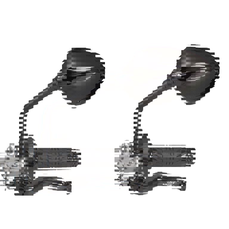 Mooie zwarte spiegel van Chaft Te gebruiken voor de linker- en rechterkant Met CE keur Montage op het het stuur, met M10x1,25 aansluiting Afmeting: totale breedte: 260mm, glas: 140x90mm
