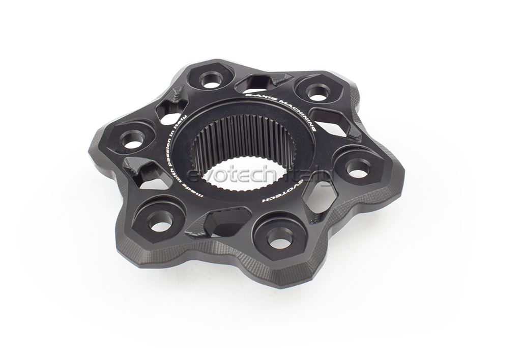 Super gave aluminium tandwieldrager van Evotech! Geheel gefreesd uit aluminium en geanodiseerd. Leverbaar in diverse kleuren. Made with passion in Italy!Sprocket carrier CNC machined for Ducati Panigale V4, characterized by an angular and attractive look. It is made of Ergal 7075-T6 and manufactured on a 5-axis multitasking machining center. It allows to get a lower weight and to increase the mechanical resistance compared to the original product.