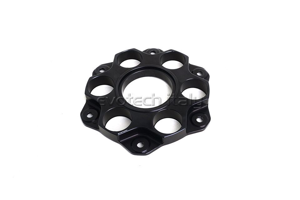 Sprocket carrier CNC machined for Triumph Speed Triple 1200 RS '21-, characterized by an angular and attractive look. It is made of Ergal 7075-T6 and manufactured on a 5-axis multitasking machining center. It allows to get a lower weight and to increase the mechanical resistance compared to the original product.