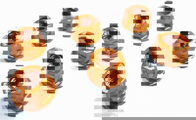 Ergal nuts machined from ergal 7075-T6 bars through sophisticated numerical control machineries. The six pockets and the six frontal holes realized on the nut give it less weight compared to the original component. These lightening don’t preclude the resistance of the product and in fact the chiselling has not been realized on the key torque point. The assembly is very easy: through a simple hexagonal key.
