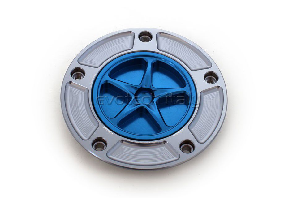 Tankdop Evotech met schroefdop Kawasaki titanium/blauw