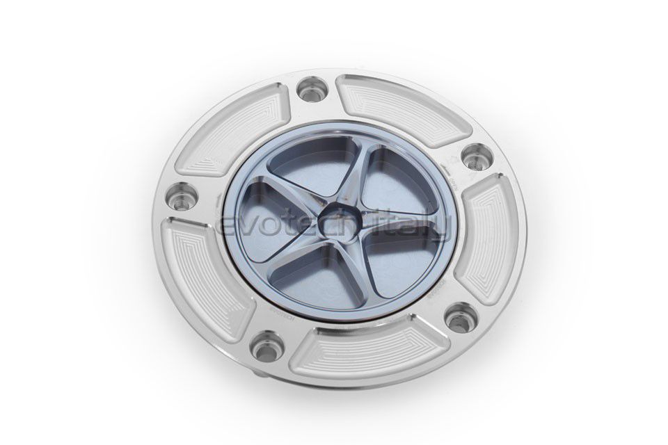 Tankdop Evotech met schroefdop Kawasaki zilver/titanium