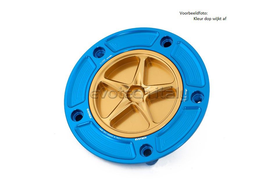 Zeer mooie tankdop met schroefdop van Evotech. Zowel de ring als dop zijn geheel gefreesd uit aluminium. Leverbaar in diverse kleuren.