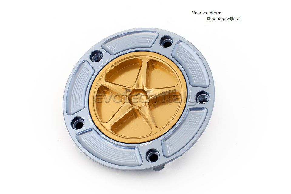 Zeer mooie tankdop met schroefdop van Evotech. Zowel de ring als dop zijn geheel gefreesd uit aluminium. Leverbaar in diverse kleuren.