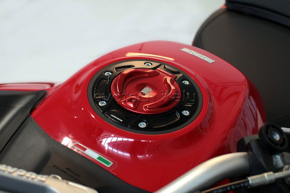 Zeer mooie tankdop van Evotech. Zowel de ring als dop zijn geheel gefreesd uit aluminium. Leverbaar in diverse geanodiseerde kleuren. Made in Italy!