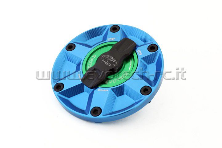 Tankdop met snelsluiter van Evotech voor diverse Aprilia / Triumph / MV Agusta blauw/groen