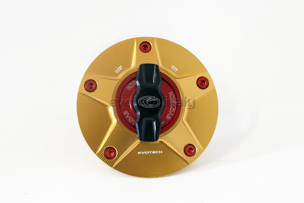 Zeer mooie tankdop met snelsluiter van Evotech voor diverse Suzuki modellen. Zowel de ring als dop zijn geheel gefreesd uit aluminium. Leverbaar in diverse geanodiseerde kleuren. Made in Italy!