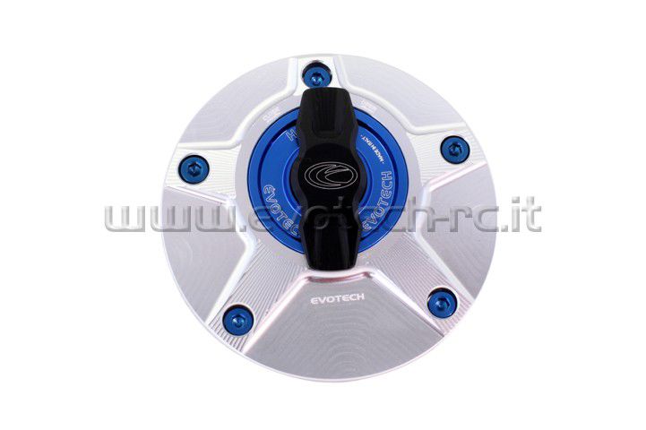 Tankdop met snelsluiter van Evotech voor diverse Yamaha / Ducati / MV Agusta zilver/blauw