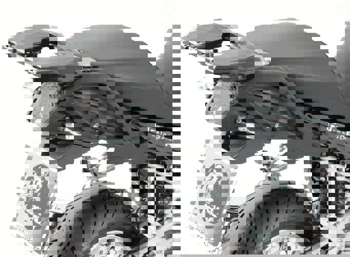 Zeer stabiele topdrager gemaakt van hoogwaardig aluminium en gepoedercoat staal. Specifiek ontworpen voor uw motor, dus eenvoudig te monteren. Als de opstaande beugel omhoog geplaatst staat, dan kunnen alle topkoffers van Hepco&Becker eenvoudig op de drager bevestigd worden. Dankzij de uitsparingen die rondom in de drager verwerkt zijn, kan deze drager, met of zonder beugel, eventueel ook gebruikt worden om bijvoorbeeld een bagagerol met spanbanden aan de drager vast te maken. Als de beugel is neergeklapt, dan is het ook mogelijk om een universele grondplaat van een ander koffermerk te monteren.