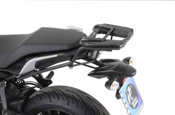 Zeer stabiele topdrager gemaakt van hoogwaardig aluminium en gepoedercoat staal. Specifiek ontworpen voor uw motor, dus eenvoudig te monteren. Als de opstaande beugel omhoog geplaatst staat, dan kunnen alle topkoffers van Hepco&Becker eenvoudig op de drager bevestigd worden. Dankzij de uitsparingen die rondom in de drager verwerkt zijn, kan deze drager, met of zonder beugel, eventueel ook gebruikt worden om bijvoorbeeld een bagagerol met spanbanden aan de drager vast te maken. Als de beugel is neergeklapt, dan is het ook mogelijk om een universele grondplaat van een ander koffermerk te monteren.