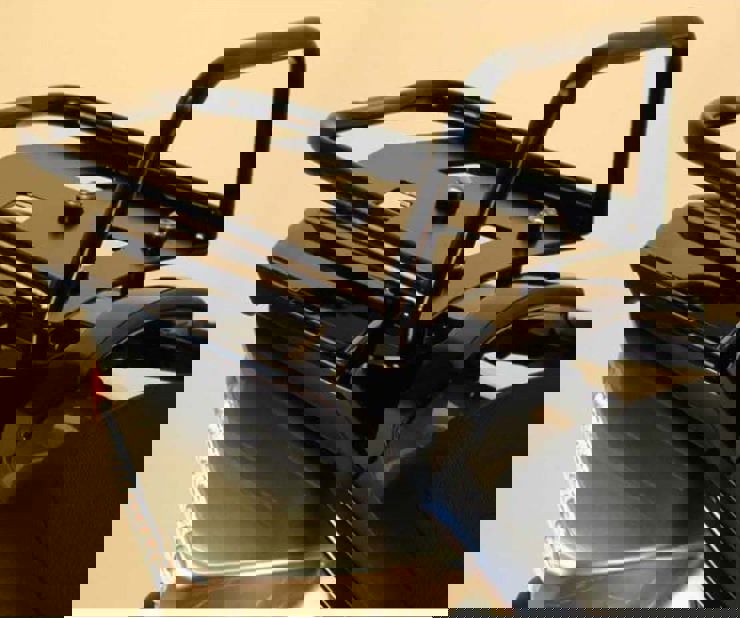 Deze kofferdrager is op de originele drager gemonteerd. De topkoffers van Hepco&Becker die met een metalen slot zijn uitgerust kunnen hierop bevestigd worden.