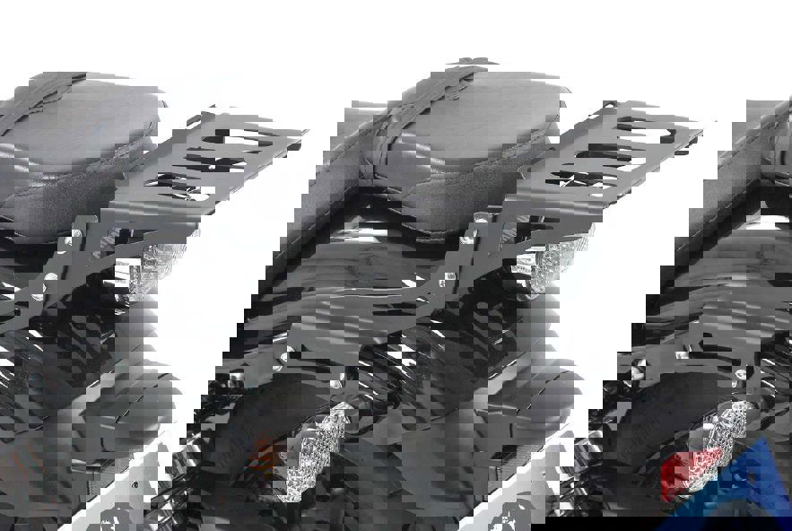 De topdrager is uitgevoerd als mini drager. Hierop kunnen alleen universele topkoffers (met grondplaat) gemonteerd worden!