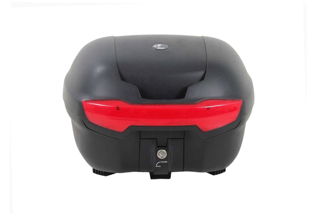 -geschikt voor een helm -zwarte koffer met rode reflector -waterdicht -gemaakt van high impact materiaal -past op een H&B Alurack, Easyrack en Tube topdrager -maximaal tot 5kg laden -leverbare accessoires: rugsteun, rekje en binnentas -inhoud: 35 liter -afmetingen bin: 44x29x32cm -gewicht: 3.6kg