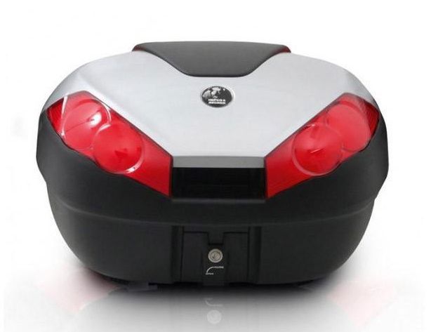 -geschikt voor twee helmen -zwarte koffer met rode reflector -zilver kleurpaneel -waterdicht -gemaakt van high-impact materiaal -past op een H&B Alurack, Easyrack en Tube topdrager -maximale lading tot 5kg -leverbare accessoires: rugsteun, rekje en binnentas -afmetingen binnenkant HxBxD: 33x53x33cm -afmetingen buitenkant HxBxD: 35x60x46cm