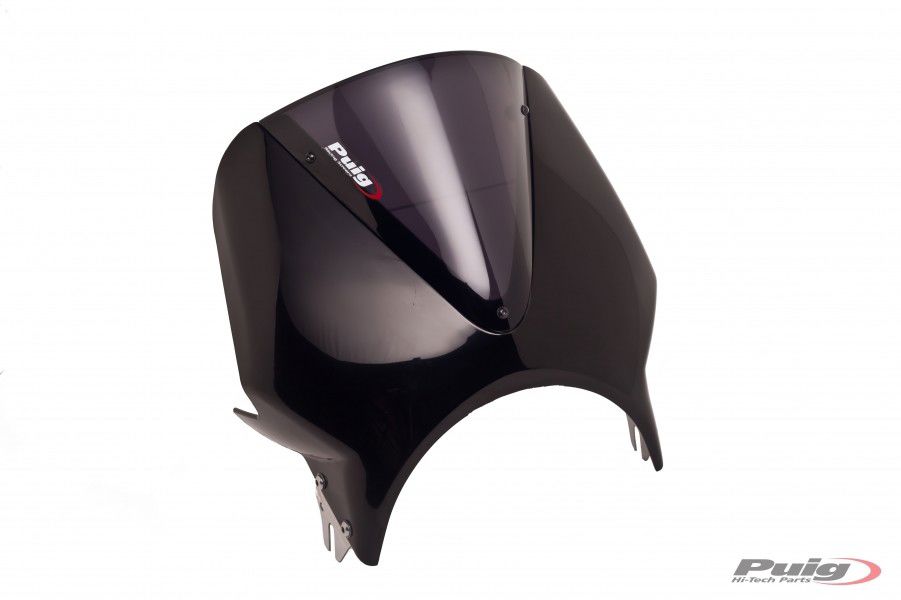 Windscherm van het merk Puig model Vision in de kleur zwart met een ruitje in kleur naar keuzeUniverseel windscherm voor de motor. Voor een betere windbescherming. Bevestiging aan de zijkant van de koplamp. De totale hoogte is 420mm, en de totale breedte 405mm. Diameter koplamp ongeveer 18-20 cmEigenschappen:Merk: PuigOnderdeelsoort: windschermenRuitsoort: windschermen