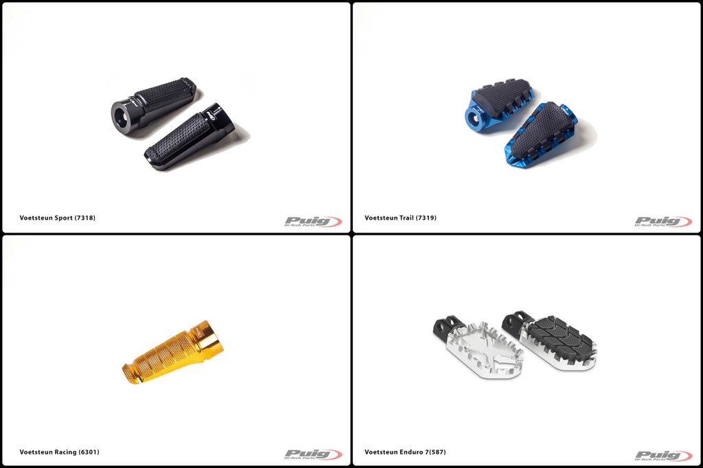 Deze voetsteunen van het merk PUIG worden geleverd per set.Deze voetsteunen van het merk PUIG hebben een ergonomisch design en beschikken over de volgende eigenschappen:- de rubbers kunnen bij het Enduro model verwijdert worden als de voetsteunen meer grip moeten bieden bij bijvoorbeeld offroad rijden- minder gewicht- toename van grondspeling- voetsteun is te roteren- leverbaar in verschillende kleuren (adapters zijn alleen leverbaar in het zwart)Eigenschappen:Onderdeelsoort: VoetsteunenMerk: PuigVoetsteunzijde: Voorzijde