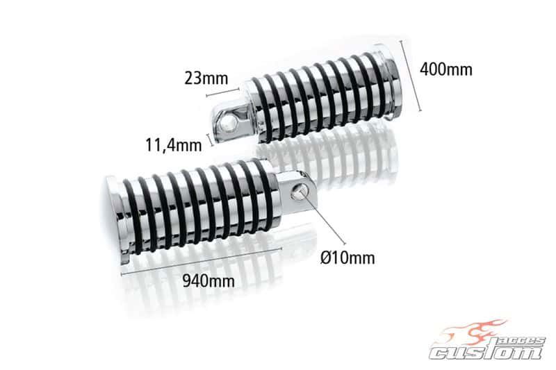 Universele opklapbare highwaybar voetsteunset model Class 2 van het merk Custom Acces. De voetsteunen worden met een bout bevestigd. Chromen steunen met rubber delen voor meer grip. Lengte 94mm, diameter 40mm.Voetsteunset opklapbaar model Class 2 Custom AccesEigenschappen:Merk: Custom AccesOnderdeelsoort: voetsteunen