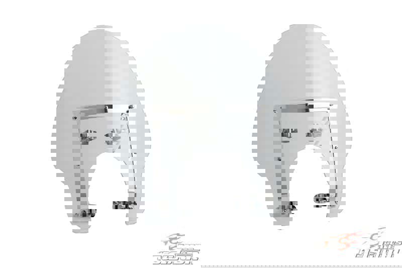 Universeel windscherm model America II Windscherm gemaakt voor karakter en comfort. Gemaakt van 4mm dik acrylic materiaal in de vorm van een karakteristieke ronde vorm. De totale hoogte is 560mm en de totale breedte is 560mm. Dit windscherm wordt gemonteerd op vier punten op het stuur en de voorvork, zodat beweging van het windscherm verminderd wordt.