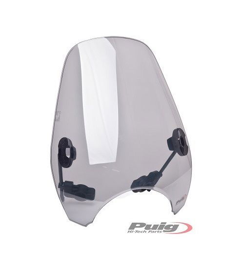 Mooi windscherm model Basic in de kleur licht getint van het merk PuigWordt geleverd inclusief universele bevestiging set, montage op het stuur. -Totale hoogte is 410mm -Totale breedte is 360mmUniverseel windscherm. Voor een betere windbescherming. Eigenschappen:Merk: PuigOnderdeelsoort: windschermenRuitsoort: windschermen