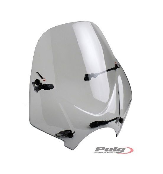Mooi licht getint windscherm model Ranger van het merk Puig.Het windscherm wordt geleverd inclusief universele bevestiging set. De bovenste bevestiging zit op het stuur en de onderste op de voorvork. -Totale hoogte 510mm -Totale breedte 510mm.Voor een betere windbescherming.Eigenschappen:Merk: PuigOnderdeelsoort: windschermenRuitsoort: windschermen