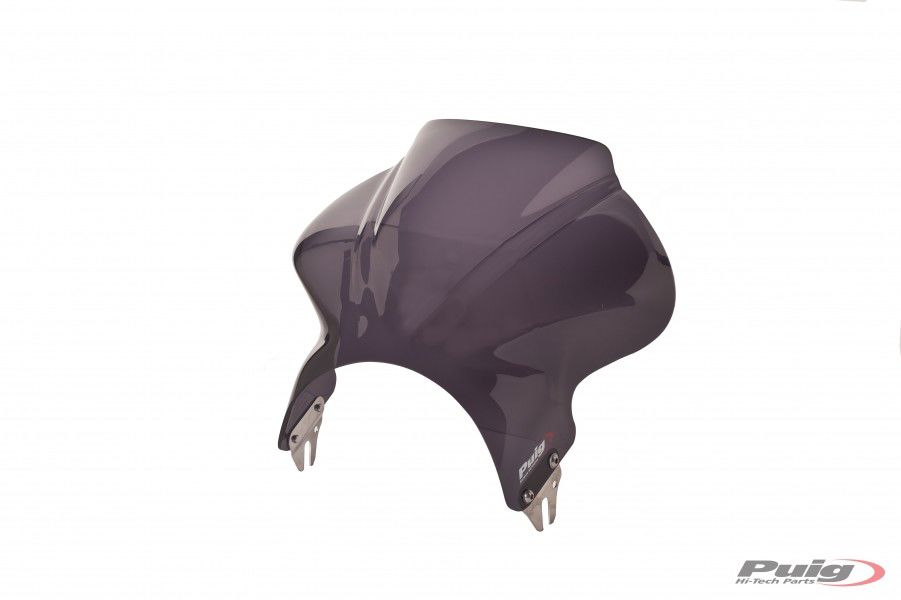 Het windscherm wordt bevestigd aan de zijkant van de koplamp. De totale hoogte is 295mm, en de totale breedte 355mm. Diameter koplamp ongeveer 18-20 cm.
